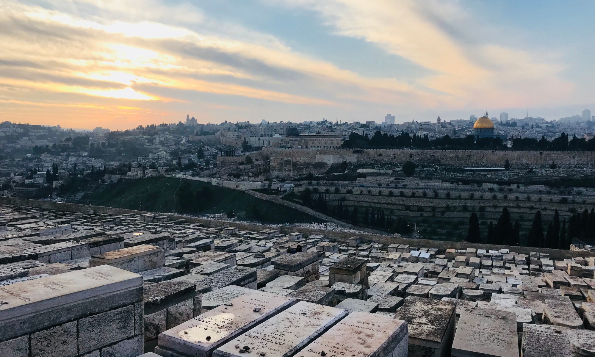 Tras él, en el Jerusalén este, que es la parte árabe, está el mítico Monte de los Olivos, donde Jesús iba a orar y donde fue apresado. Desde su inmenso cementerio judío (un lugar privilegiado para el entierro, porque según ellos el verdadero Mesías vendrá por ahí) la vista de la ciudad es impresionante. Un grupo de judíos estaba orando entre lápidas cuando, con la puesta de sol, se escuchaba el muecín de una mezquita cercana. La llamada a la oración a los musulmanes se fundía con los cánticos de los ultra ortodoxos bajo un increíble cielo anaranjado. Si el resultado era una polifonía respetuosa o una cacofonía imposible lo dejo de nuevo en manos de los amantes de las metáforas.