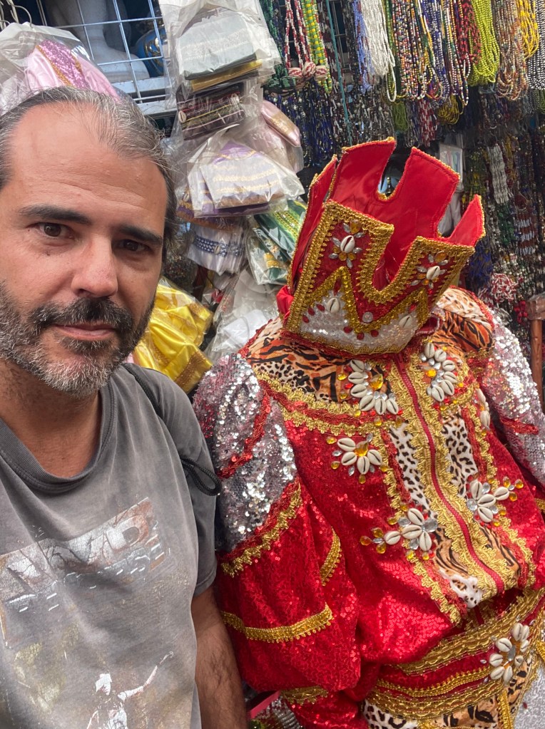 Pero lo que más me impresionó fue ver un vestido entero de un egungún, una figura fundamental en la religión yoruba y usada en unas danzas en las que se invoca el espíritu de los antepasados. En ellas, el danzante actúa de una manera bastante agresiva, llegando incluso a golpear a los asistentes con una vara. La letra con sangre entra, dicen, y es una manera que tiene el egungún de asegurar que las normas éticas de los ancestros se continúan siendo respetadas. Los bailarines, con vistosos trajes en los que no pueden faltar los «cauris», esas conchas que representan en la tradición africana la protección en el océano, se dejan poseer por los antepasados y, de formar violenta, limpian espiritualmente la comunidad y hacen prevalecer el comportamiento correcto de los predecesores.