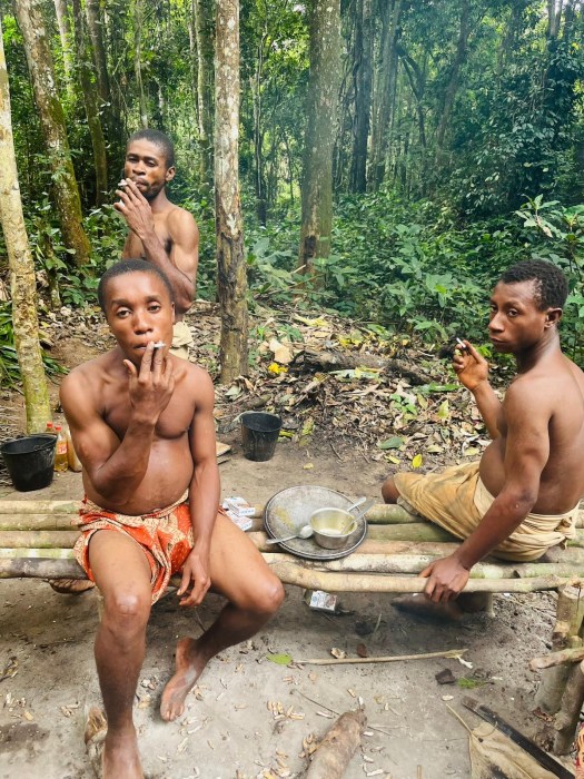 Ambos recolectan miel, que localizan en lo alto de los árboles: con el propio machete hacen más grande el agujero, introducen humo para hacer huir o aturdir a las abejas, y extraen la miel. Tanto unos como otros son grandes conocedores de los poderes curativos de las plantas y árboles, que usan de forma medicinal. Dentro de ello no incluyo la elaboración de vino de palma, con el que cogen unas cogorzas importantes.